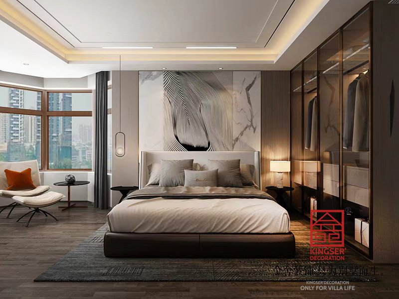 衡水漢王府別墅裝修現代法奢風格臥室效果圖