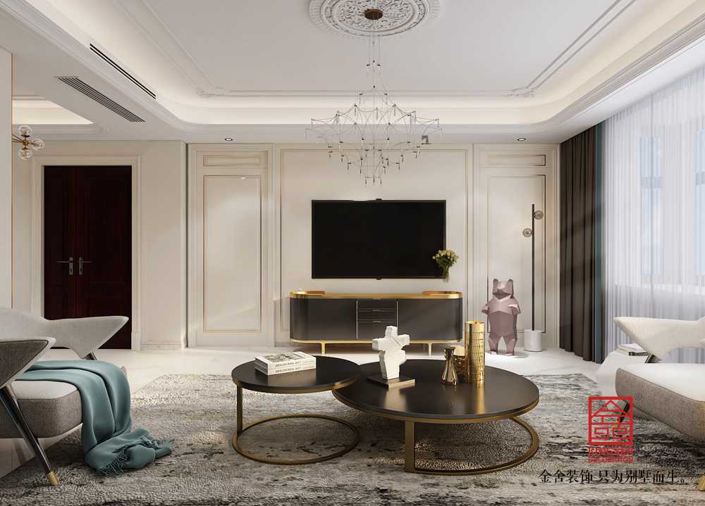 鑫界王府170平米裝修-美式輕奢-客廳