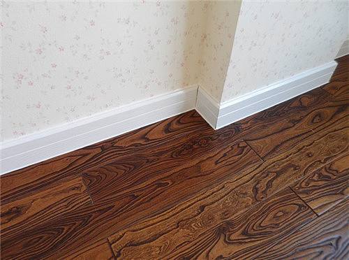 如果地板的顏色相對(duì)較深,可以采用淺色系的踢腳線與之搭配,達(dá)到視覺上的反差效果。
