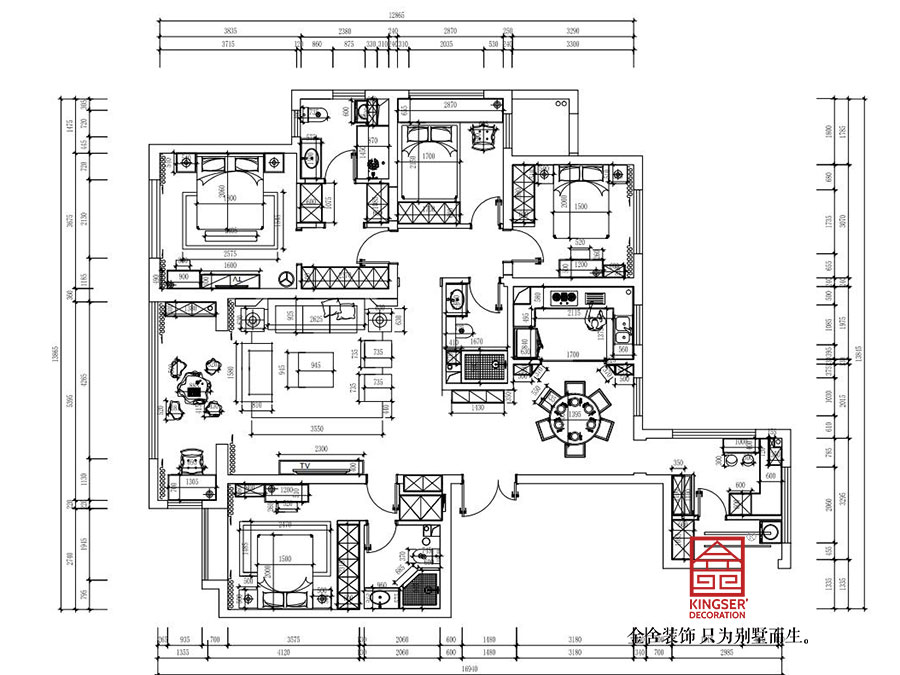 榮盛華府185平米中式風(fēng)格裝修戶型解析