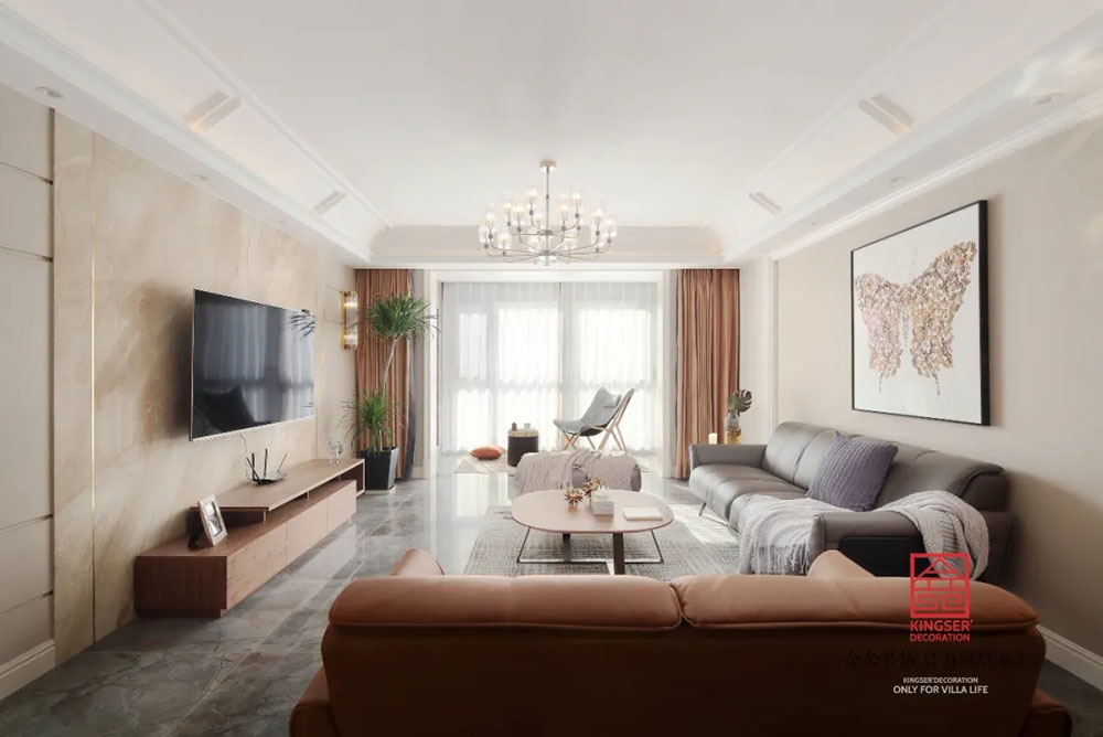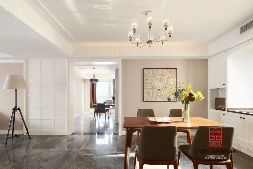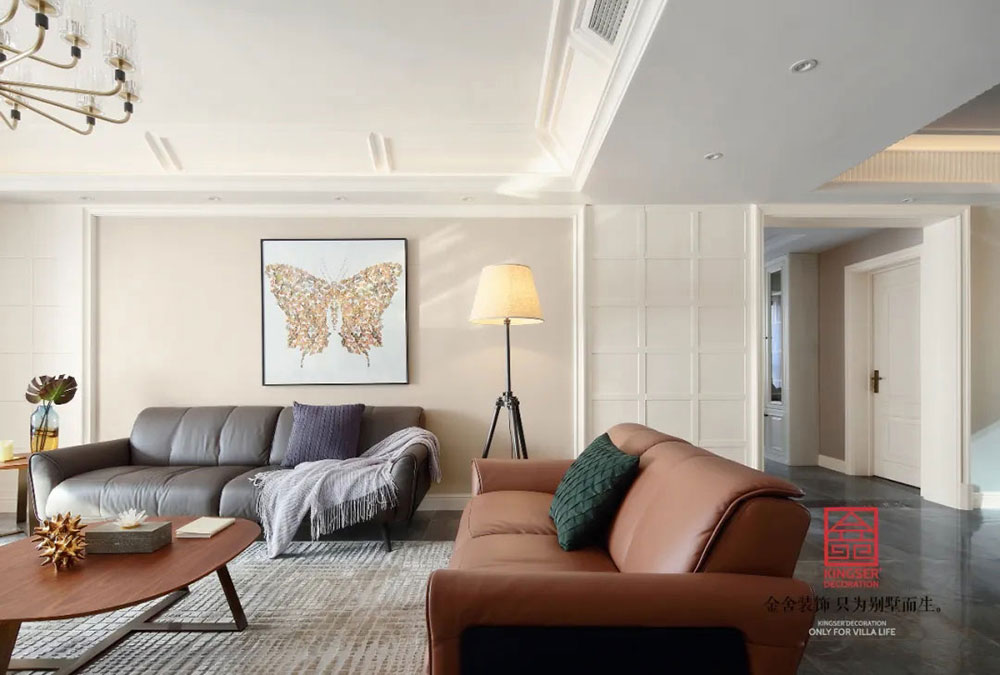 此案例為石家莊金舍裝飾-奧北公元165平米輕奢風格裝修實景圖。生活的紛擾,工作的繁雜,多少人在渴望去尋找片刻的清凈時光。「輕奢風格」,恰好迎合了這個時代人們的需求,刪繁就簡的期許,留一片純凈、清靜、自然的空間,一片讓人們沉醉的自我世界。
