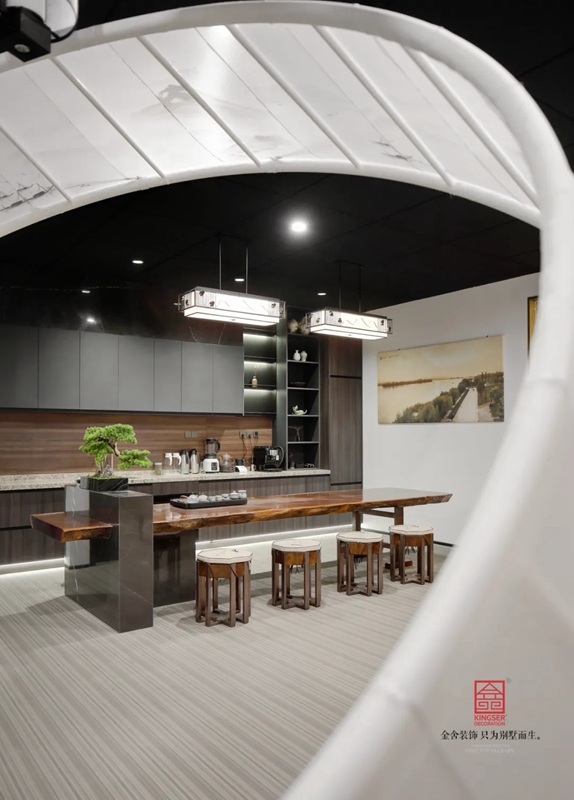 -御河上院在商場的樓盤展示區(qū)裝修實景,在設計中將自然與人文的意象融入室內(nèi)設計,綠意盎然的自然景象以其深厚的文化底蘊滋潤著人們的心靈,對自然的認識和感悟,讓人豁然開朗,心曠神怡,也就成為中國傳統(tǒng)文化資產(chǎn)的傳承、轉(zhuǎn)譯與新生 。