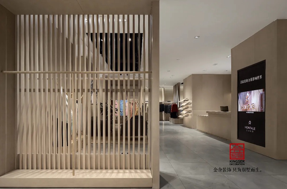 在該案的設(shè)計上設(shè)計師深諳整體與局部,線條與燈光,色彩與配飾之間的關(guān)系,把握整體而不忽視局部,突出線條而不削弱燈光,彰顯原木色彩而不漏掉配飾,匠心獨運打造出一個讓人心馳神往的購物天堂