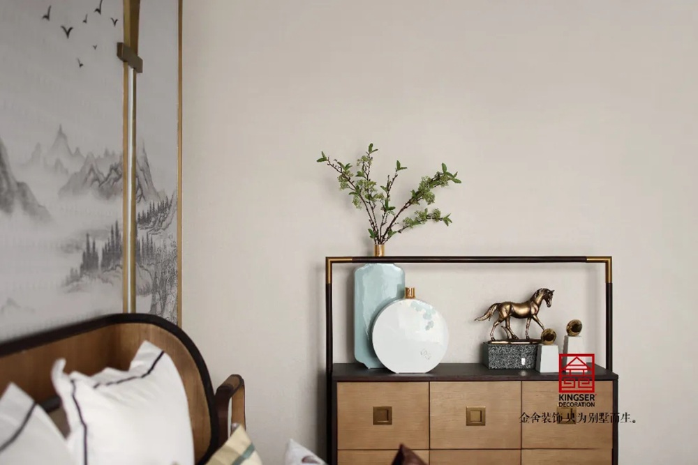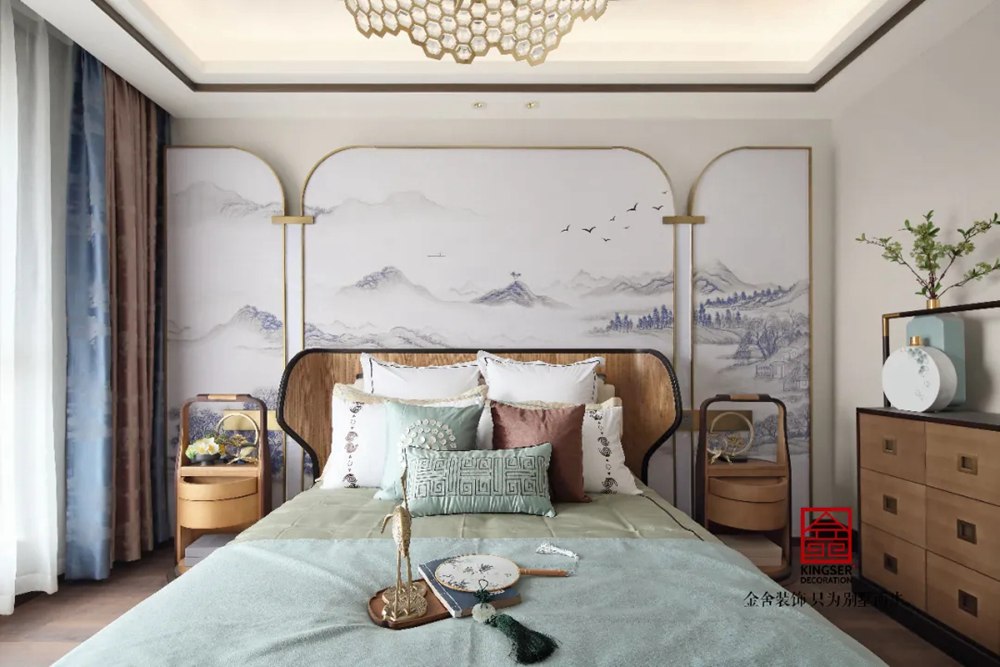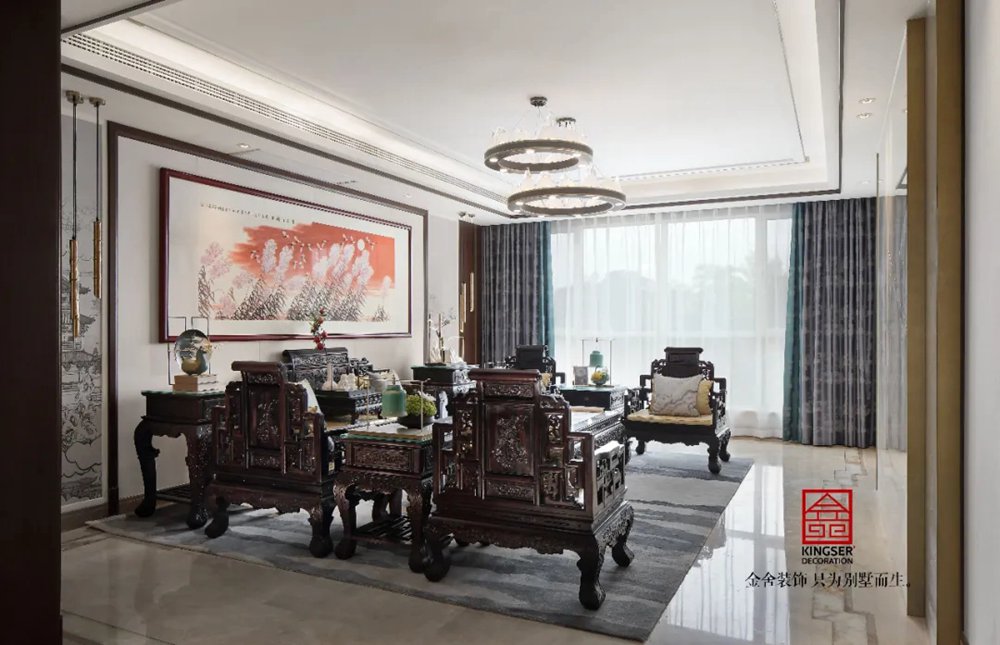 此案例為石家莊金舍裝飾-天海容天下170平米新中式風格裝修實景。新中式設計風格,有多彩豐滿,有瘦金雅致,有融合奔放。這一切是東方審美下,被現代主義漸融洗滌,成就新中式之名。