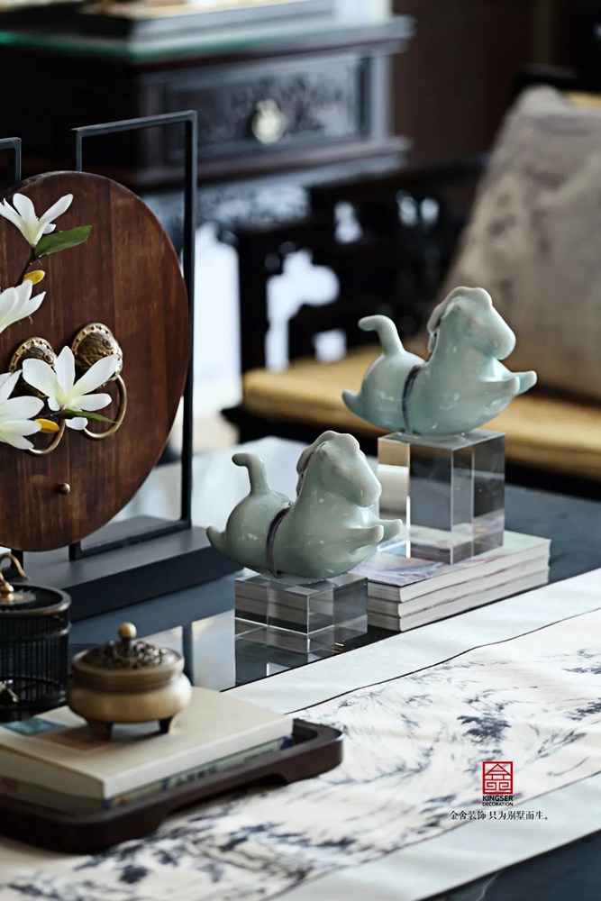 主次有序的空間規劃,虛實相間、層層推進。在淡雅怡人的色調中,極富質感的銀灰石材搭配木格柵等優質建材,同時融入地方文化藝術精粹,俯仰間皆能感受到精致優雅的東方韻致。