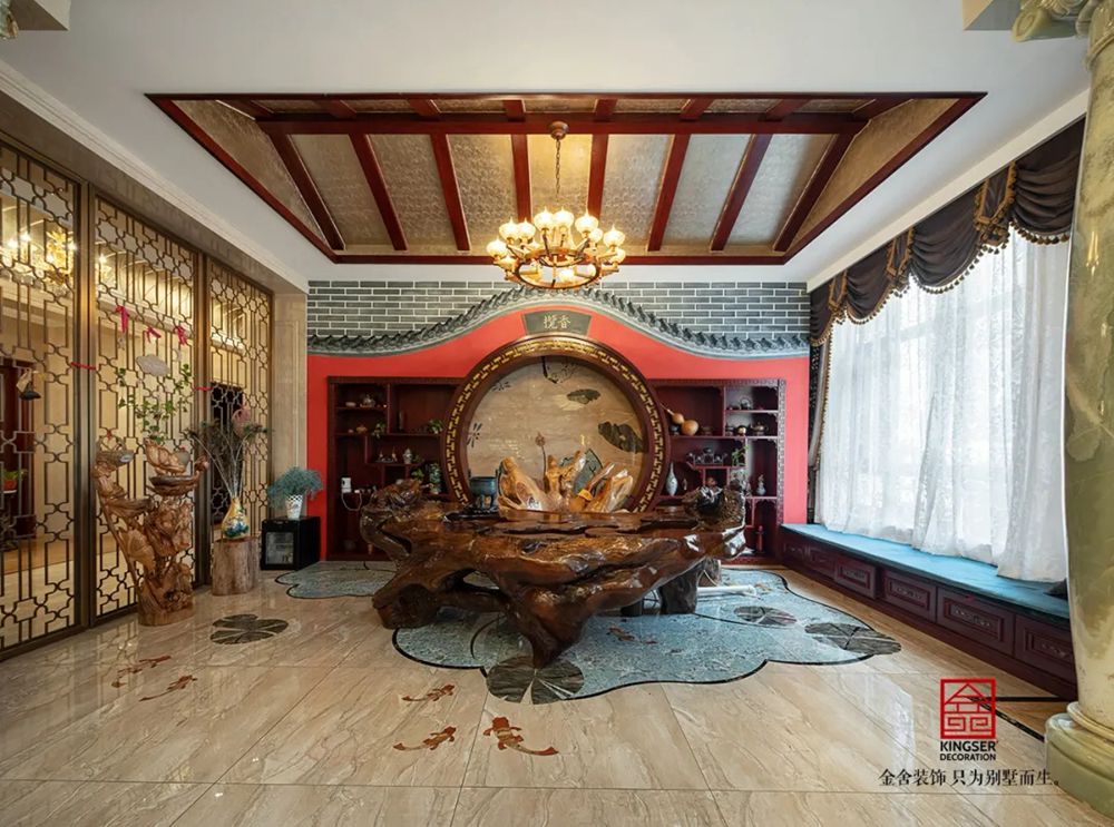 不同空間有著不同的設計效果,一樓的客廳是中式客廳和西式客廳,中式餐廳和西式餐廳,不同的空間處理成不同的效果,增加空間的實用性和整體的空間風格界定。