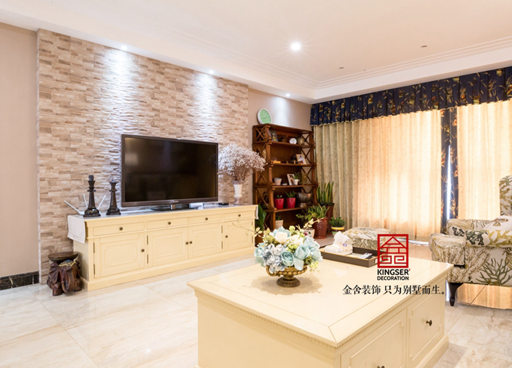 設計說明:此實景案例為河北別墅裝修裝飾-天海譽天下217平米簡約美式裝修實景。空間是為人創造的,所以人是空間的主體,而不是空間的載體。正是因為有很多人存在,所以才有情感存在。空間是有情感的,但也需要有品味。