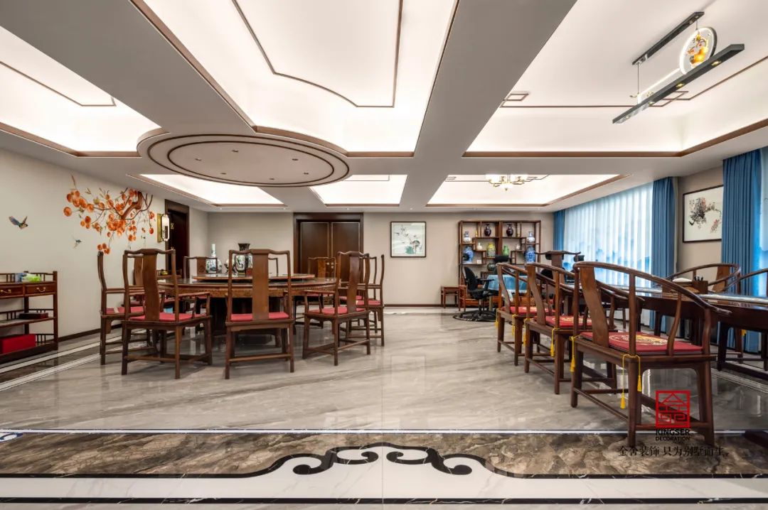 高山流水 徽墨描金,依山造屋,近水結(jié)村,徽派建筑總能給人一種天人合一的自然美學(xué)意義。依山造屋,近水結(jié)村,徽派建筑總能給人一種天人合一的自然美學(xué)意義。 本套家居會(huì)所設(shè)計(jì)以徽派風(fēng)格為主軸,融合傳統(tǒng)與現(xiàn)代元素,旨在打造一處集會(huì)客、辦公、娛樂、休息于一體的雅致空間。設(shè)計(jì)過程中,通過細(xì)膩的工藝、沉穩(wěn)的色彩以及獨(dú)特的空間布局,展現(xiàn)出中式風(fēng)格的典雅與韻味。