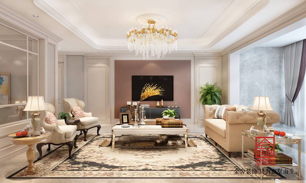 -榮盛華府300平米輕奢風格裝修效果圖。